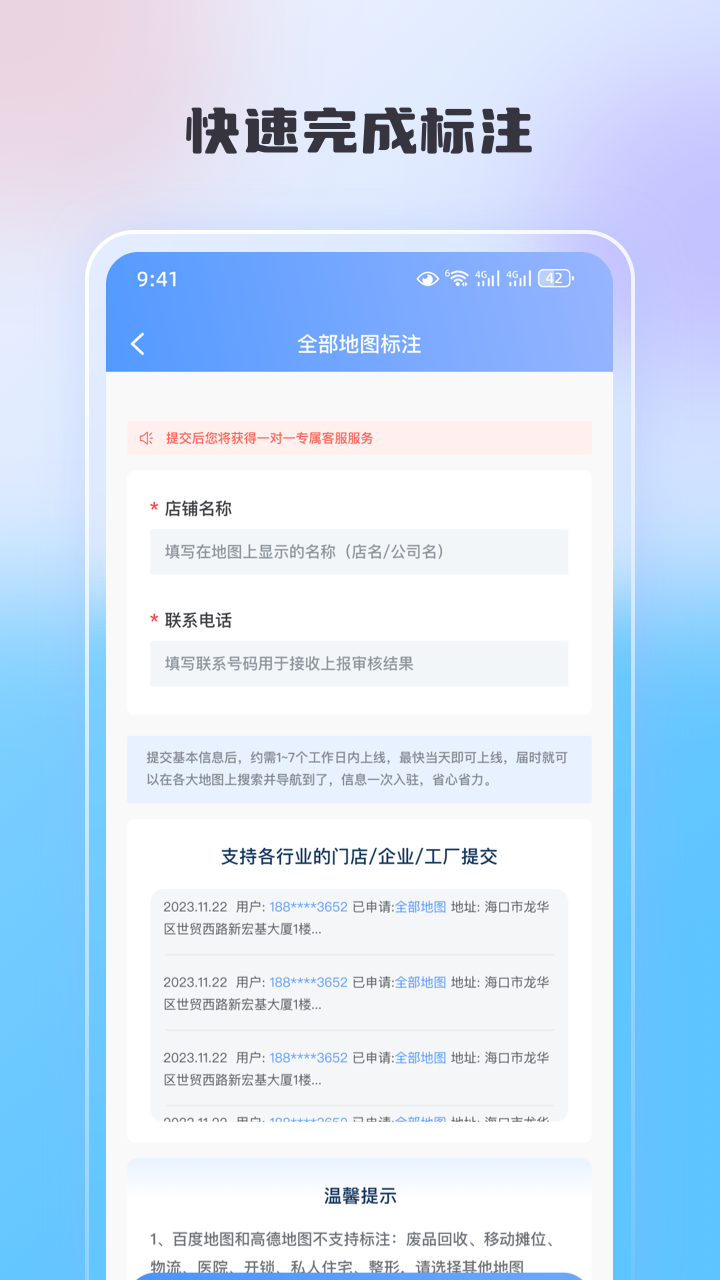 地圖標(biāo)注管家,提供代標(biāo)注服務(wù),微信地圖標(biāo)注 店鋪名稱,讓客戶快速找到您的店,標(biāo)注公司位置企業(yè)名片,微信地圖標(biāo)注.支持全部熱門導(dǎo)航地圖標(biāo)注快速申請標(biāo)注,全地圖標(biāo)注